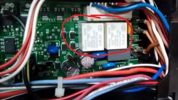 Das Ventil habe ich als Ersatzteil bestellt und getauscht, ohne Erfolg. Nun habe ich nachgemessen und festgestellt, dass am Ventil niemals Spannung anliegt. Daraufhin habe ich auf der Leistungsplatine die beiden Relais (Foto 2) erneuert, ebenfalls ohne Erfolg. Die Leitungen haben ebenfalls Durchgang bis zur Platine, es liegt also kein Kabelbruch vor.