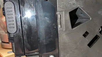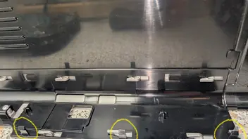Rückwand entfernen, Seitenwände vorsichtig nach vorne drücken bis die oberen Rastnasen frei sind, die forderen Rastnasen am besten mit einem kratzfreien Werkseug wie zur Handyreparatur lösen. Die kleine linke geht recht gut, rechts ist fummliger, hier mal die Position am Seitendeckel und die Rastungen im Gehäuse.