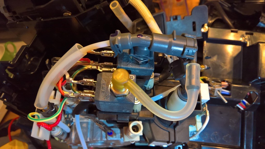 Mein Fehler und hier oben auch beschrieben. Milch kommt etwas und dann nichts mehr. Die Milch wird nicht richtig angesaugt. Das ist vermutlich das Magnetventil von der Dampfgruppe. Es gibt inzwischen eine neuere, vermutlichauch bessere Version. Die Anschlüsse sind aber etwas anders und man brauch noch ein paar zusätzliche Plastikteile und Klemmen. Kosten zusammen 22€.