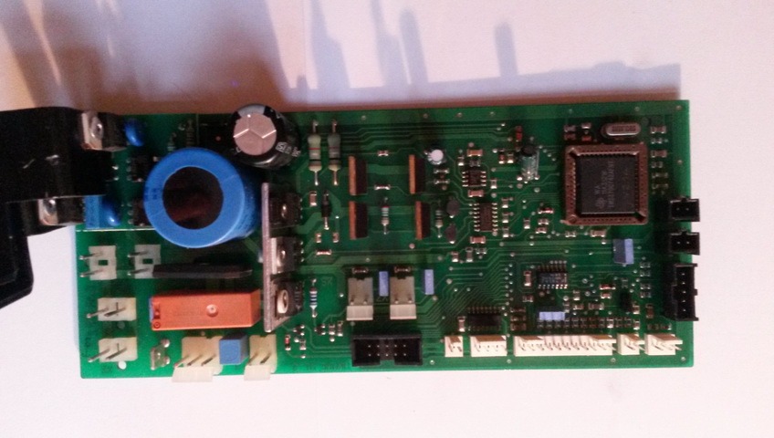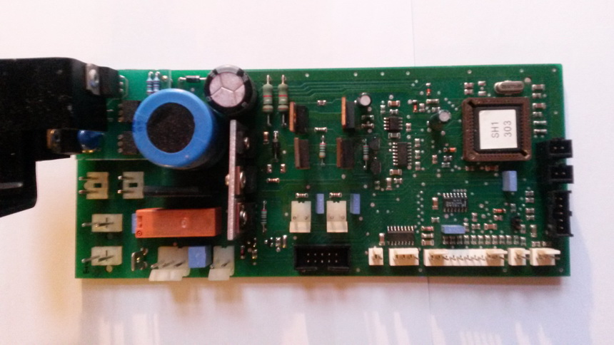 Hier mal 2 Bilder der Platine, die die Fehlermeldung verursacht. Mich verunsichert der Aufkleber auf der CPU. "SH1 303" Die CPU macht keine Ausschaltspülung.