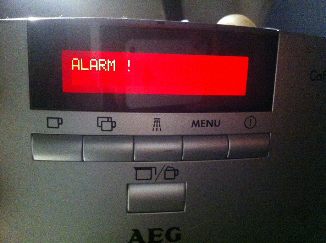Leider komme ich nun nicht mehr aus dem Alarmstatus heraus und mein Grundproblem, dass keine Flüssigkeit aus dem Kaffeebezug kommt, ist auch nicht gelöst.