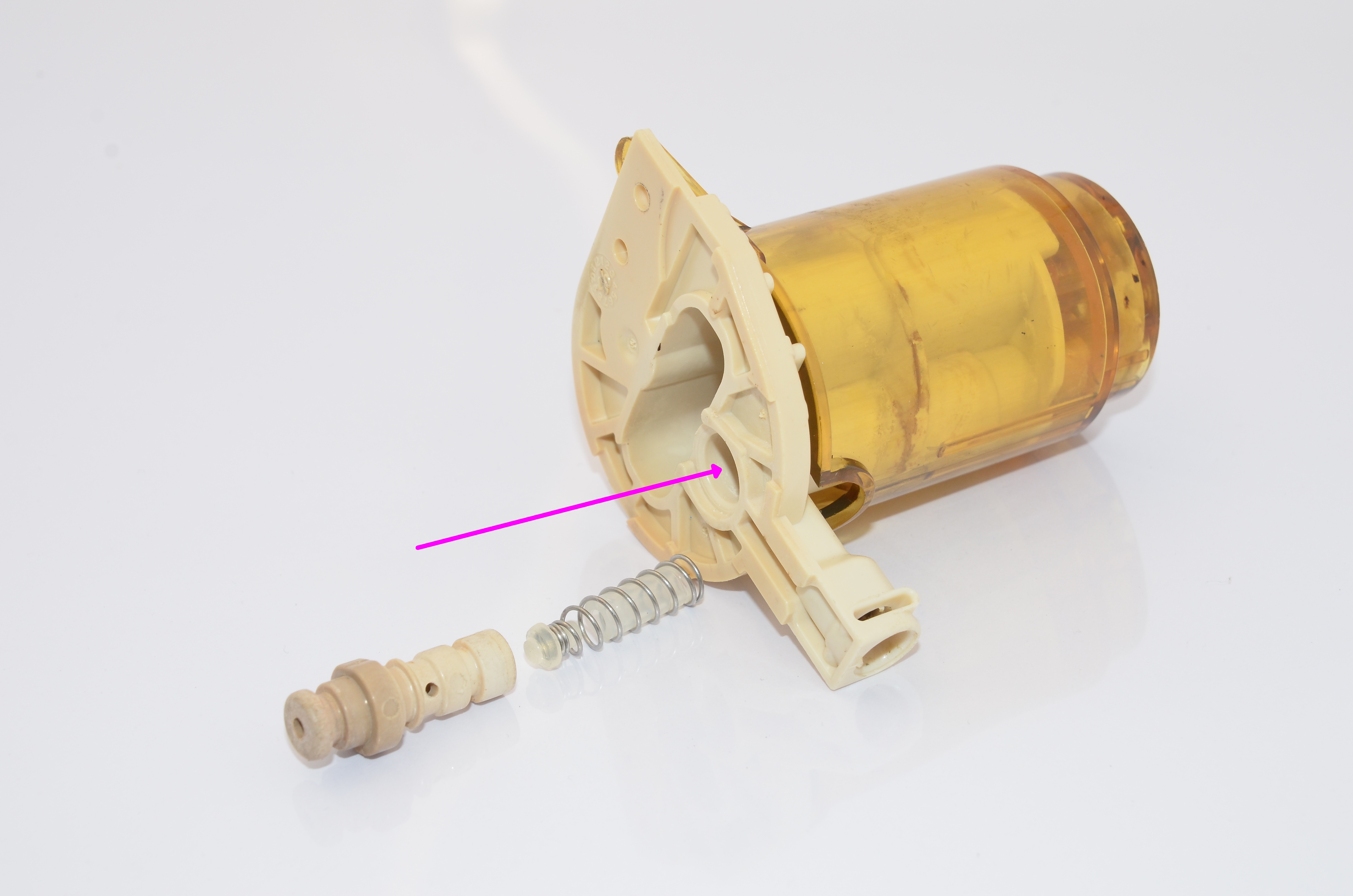 + Oberen Brühkolben zerlegt, gereinigt - war ziemlich viel Dreck drin, an einer Stelle fast verstopft, aber kein Kalk, sondern was schwarzes