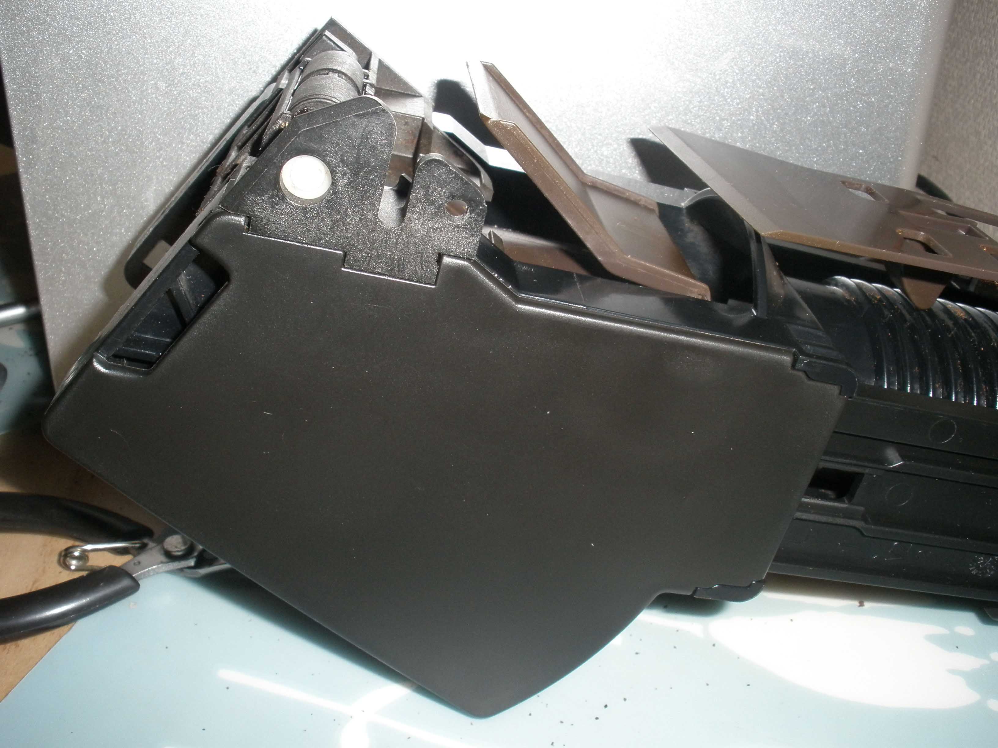 Uebrigens behindert diese Zunge auch nnoch immer den Einschub des Tresters. Das kann ja wohl nicht normal sein, allerdings hatte ich dieses Problem schon einige Mal, und es hat sich immer von selbst behoben.