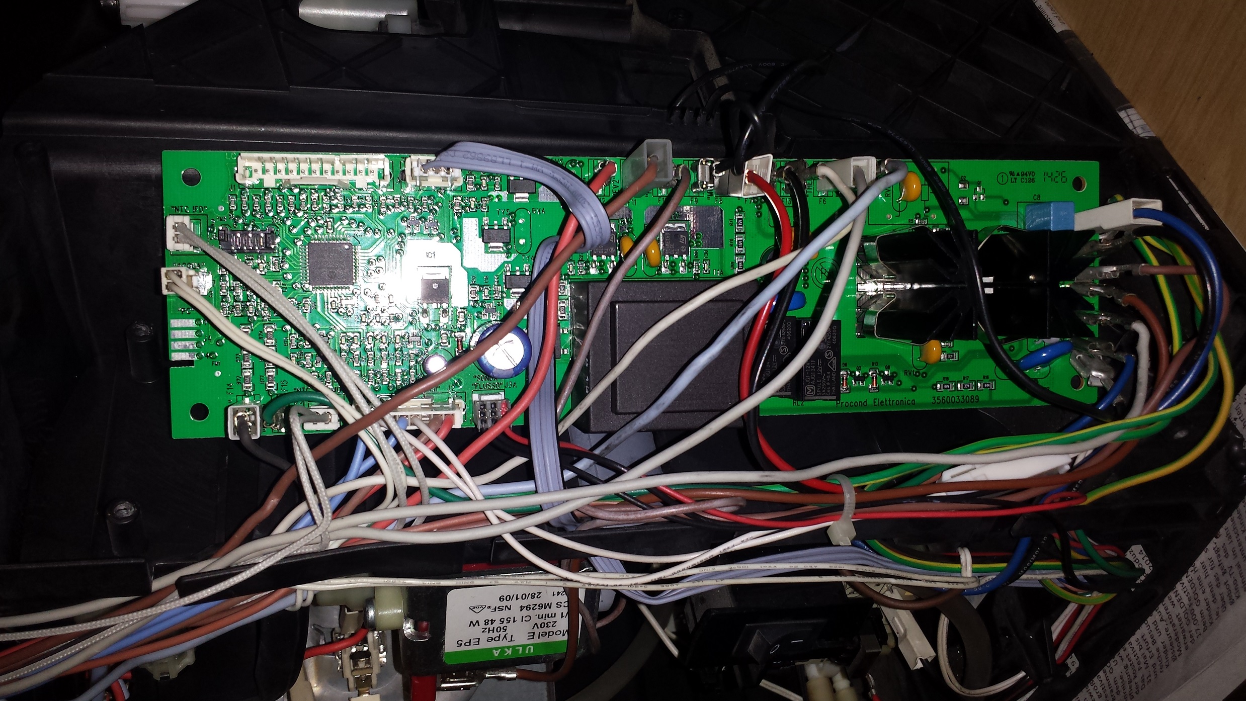 so neue Steuerplatine da und eingebaut(Foto,breite Stecker natürlich vorher angeschlossen). Es bleibt wie beschrieben, gleiche Fehler. Kein Mux, auch das nach dem einschalten der Motor kurz zu hören ist... kein Geräusch. MIst