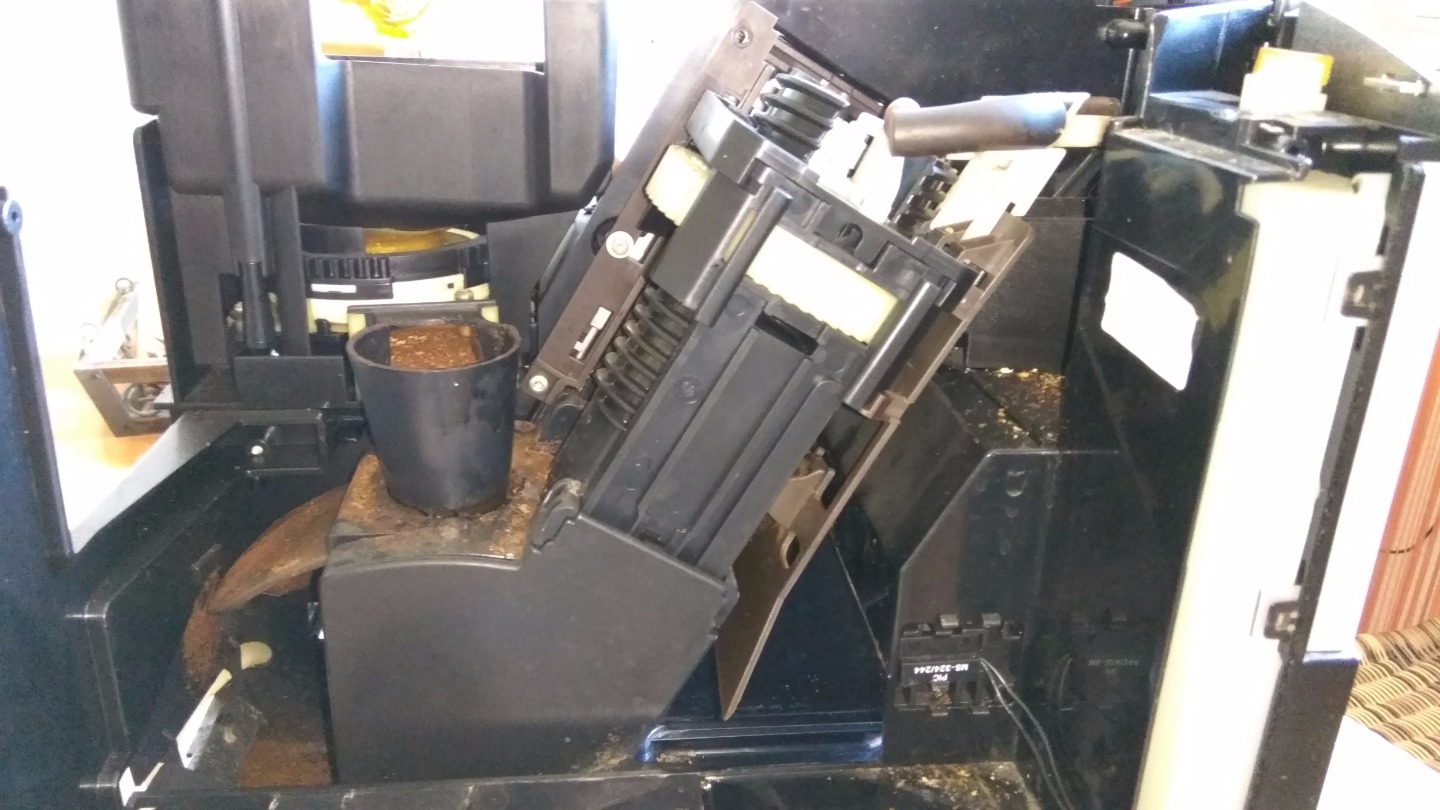 Meine 8 Jahre alte Krups ist seit heute morgen "inkontinent". :1f615: Schon nach der ersten Tasse Kaffee kam mir Wasser unterhalb der Maschine entgegen und beim Herausziehen der Trester - Schublade sah es dann so aus :