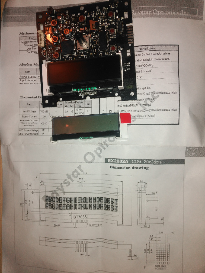 Original Display ist ein TM202SIFSUGWA schwer Infos darüber zu bekommen , aber es sollte ein 20x2 LCD mit ST7036i Controller sein.