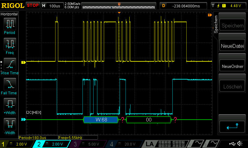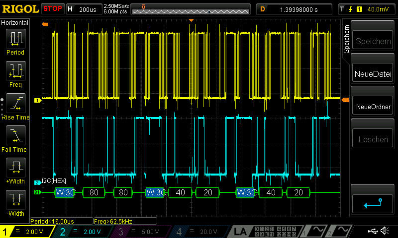 das Signal sieht "etwas" unschön aus da das Display an +20V und +15V liegt und ich nicht gegen GND messen konnte...