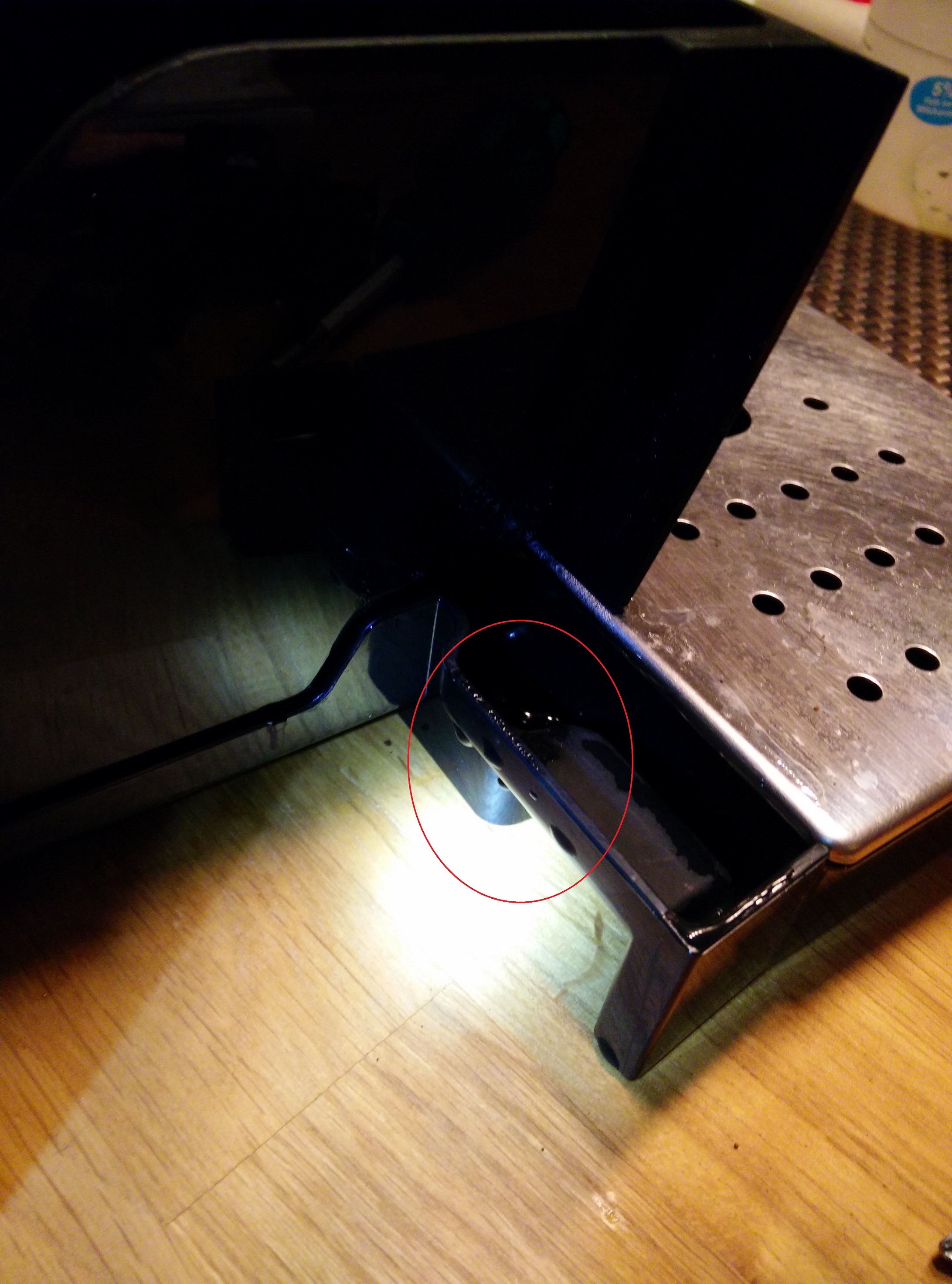 Dann war weiterhin das Problem, dass nach Dampfbezug vorne links immer etwas Wasser unter der Maschine war. Also dort, wo die kleine rote Kappe sitzt.