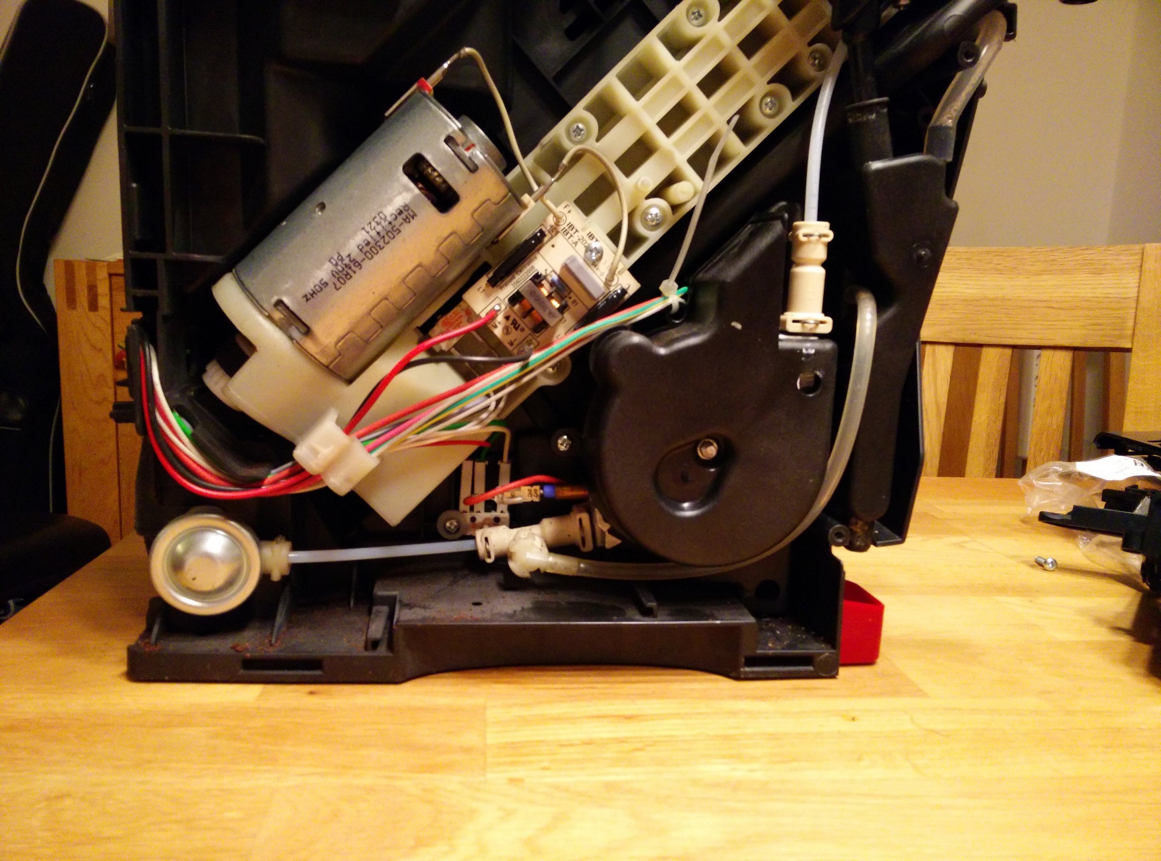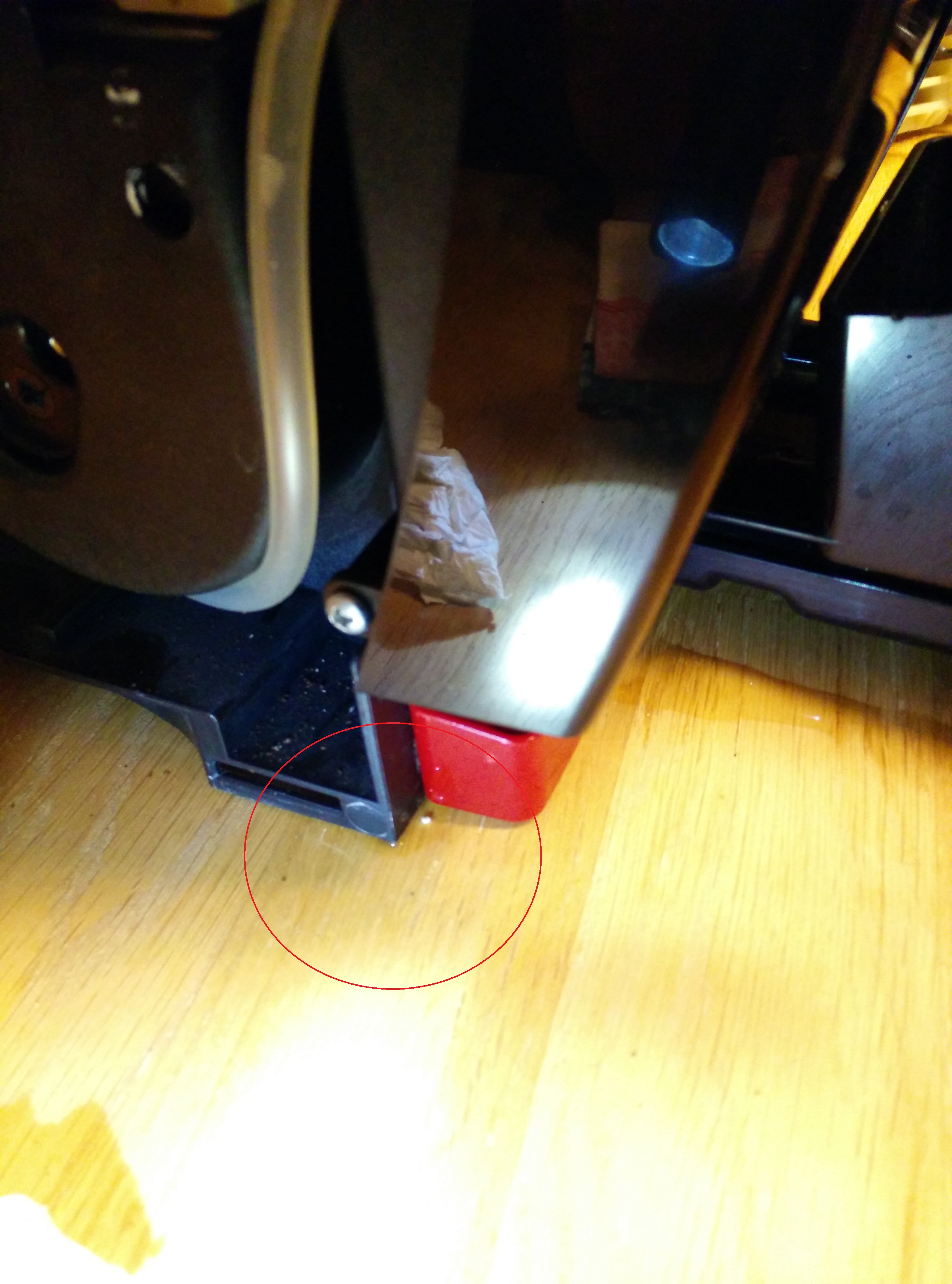 Dann war weiterhin das Problem, dass nach Dampfbezug vorne links immer etwas Wasser unter der Maschine war. Also dort, wo die kleine rote Kappe sitzt.