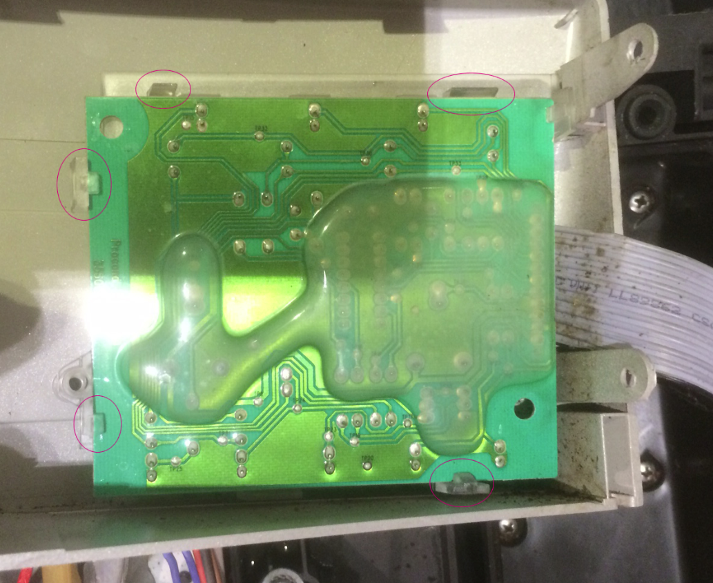 Im Anhang seht Ihr ein Bild davon. Muss die Platine mit sanfter Gewalt aus diesen Nasen rausmanövriert werden oder muss die gesamte Kunststoffaufnahme rausgepfriemelt werden? Das Teil leistet erhöhten Widerstand!