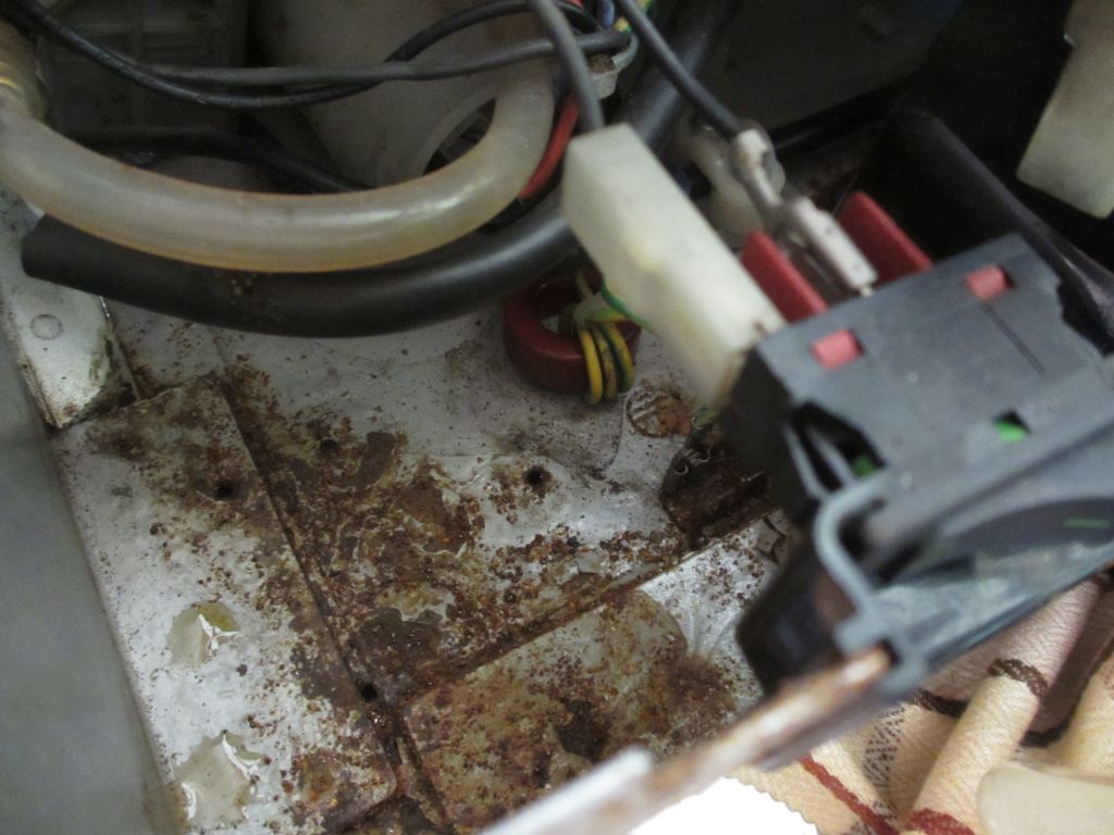An eine defekte Wassertank-dichtung hatte ich auch schon gedacht- die könnte für die massiven Rostflecken des Bodenbleches verantwortlich sein (aber dennoch stand die Maschine wohl etwa 2 Jahre ohne Wasser..).