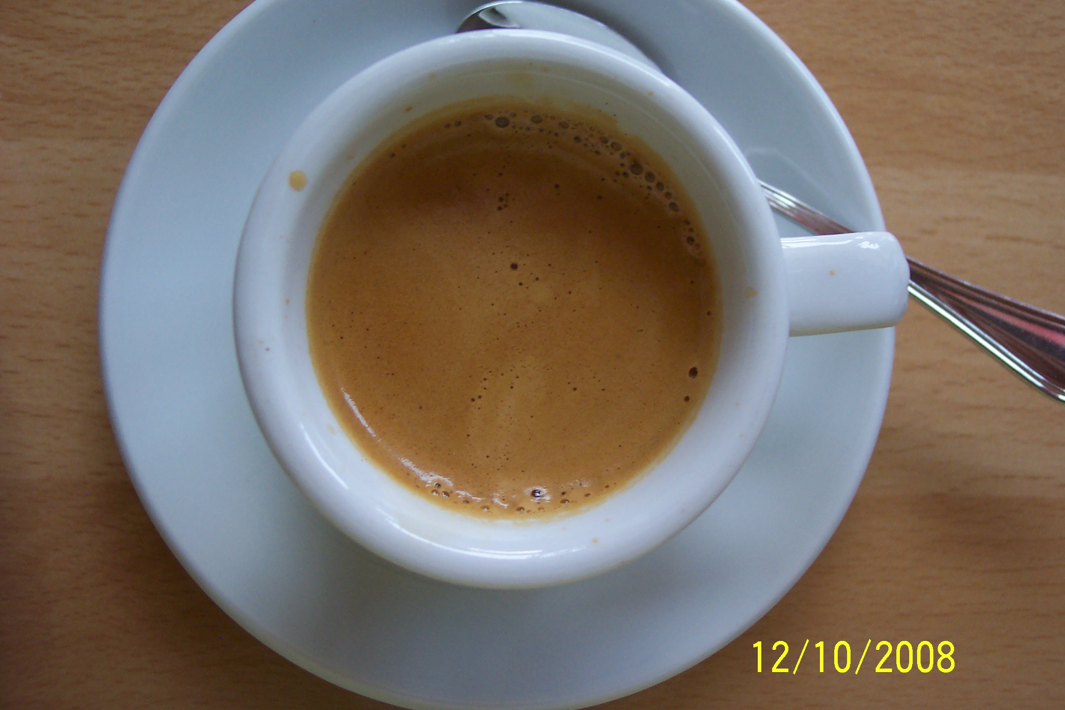 Gerade habe ich eine tiefbraune Crema in der Tasse...lecker, der Espresso schmeckt nach Zartbitterschoki. Der runde Abschluss zu einem guten Essen (Gulasch mit Semmelknödel). Gleich gibts noch ein Weizen :1f37b: