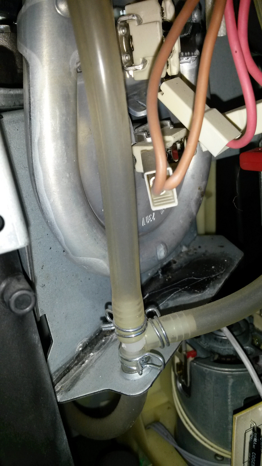 Anscheinend ist diese Undichtigkeit auch für die sporadisch auftretende Nässe, bis hin zur Pfütze, unterhalb der Maschine zuständig.
