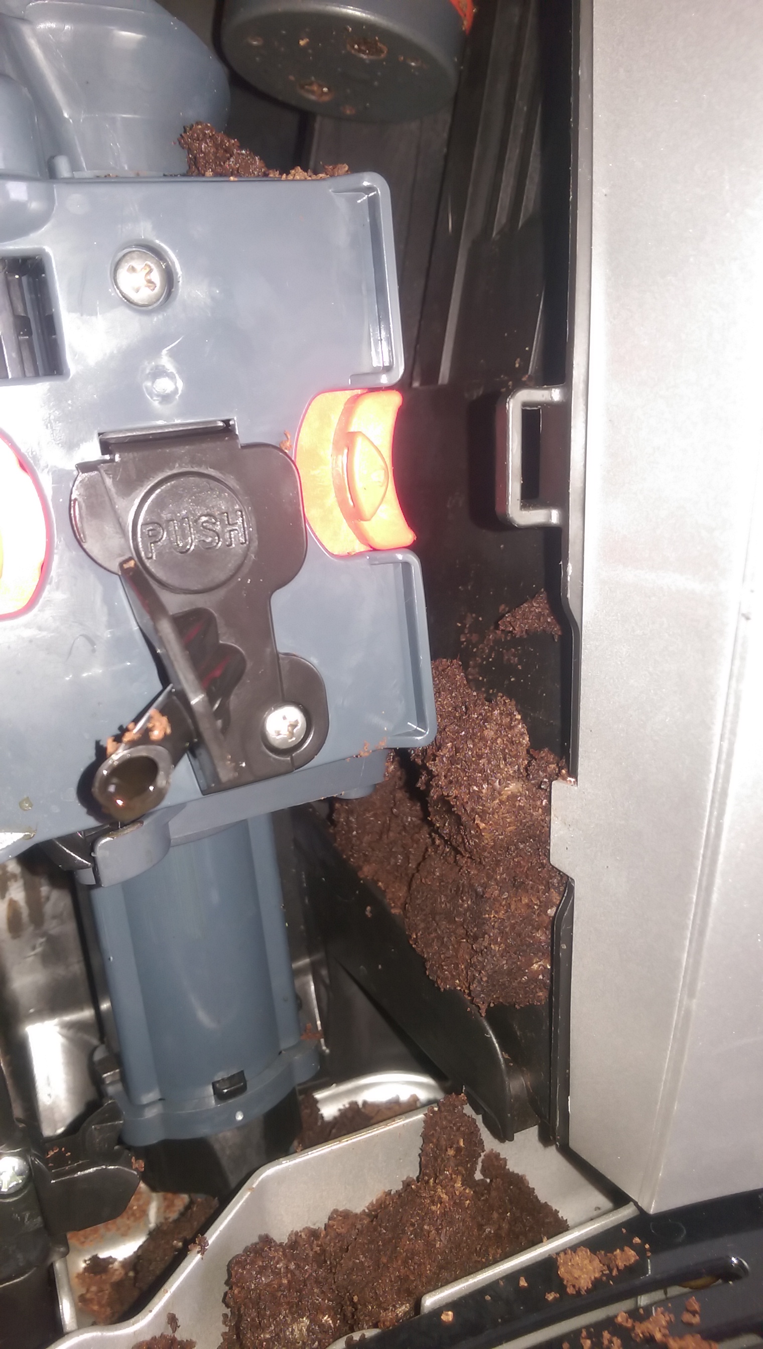 Ich hab da eine ESAM 4200 ( noch in Garantie ) die den Trester öfters nicht in den Tresterbehälter entsorgt. Der Trester liegt dann RECHTS von der Brüheinheit - siehe Foto.