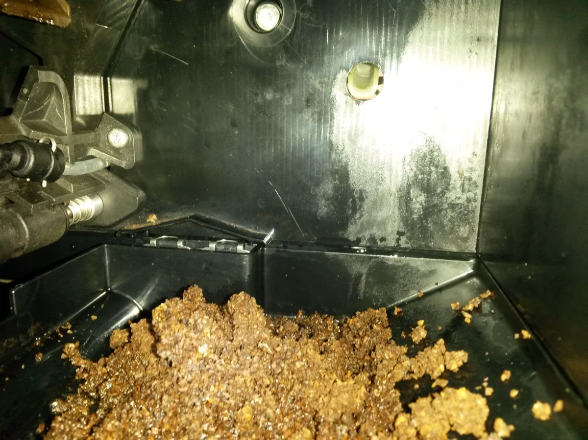 Desweiteren fällt mir auch das der Kaffeesatz extrem feucht und matschig. Siehe Bild.