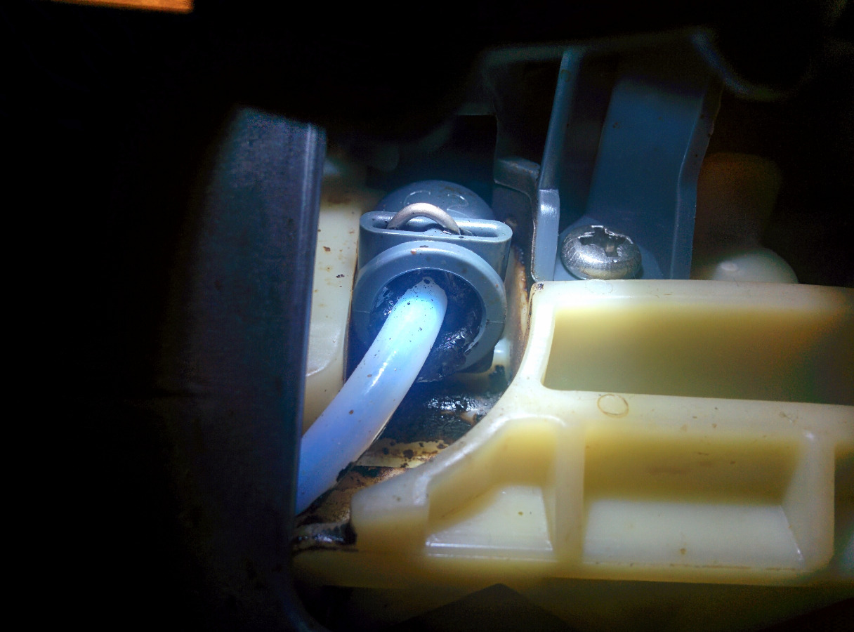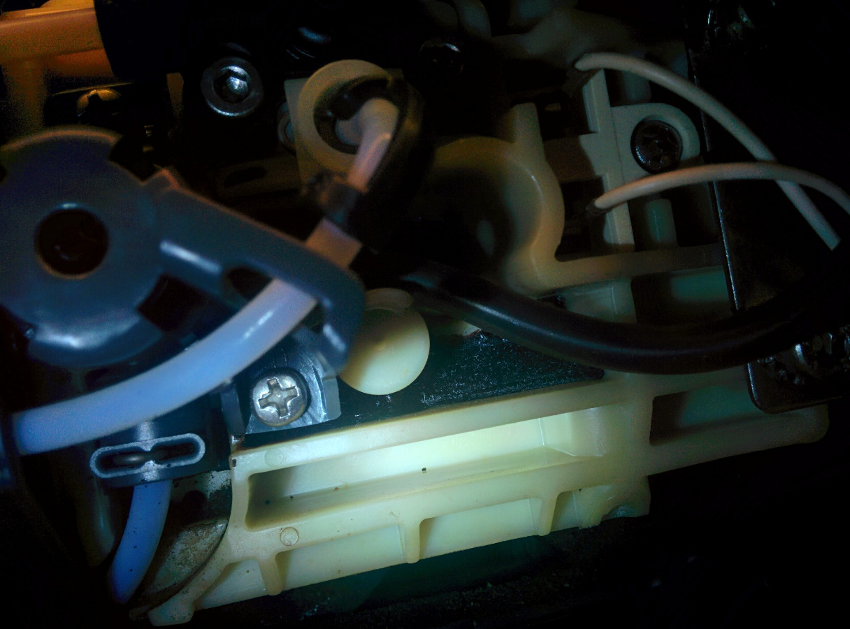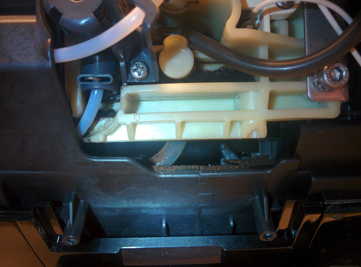Konnte auch nach Öffnen des Gehäuses im Inneren keine undichten Stellen entdecken, allerdings habe ich auf der linken Seite auf dem "Rohr" ober dem schwarzen Behälter ebenfalls eine Kalkablagerung, hab mal paar Fotos gemacht, damit man erkennt, was ich meine