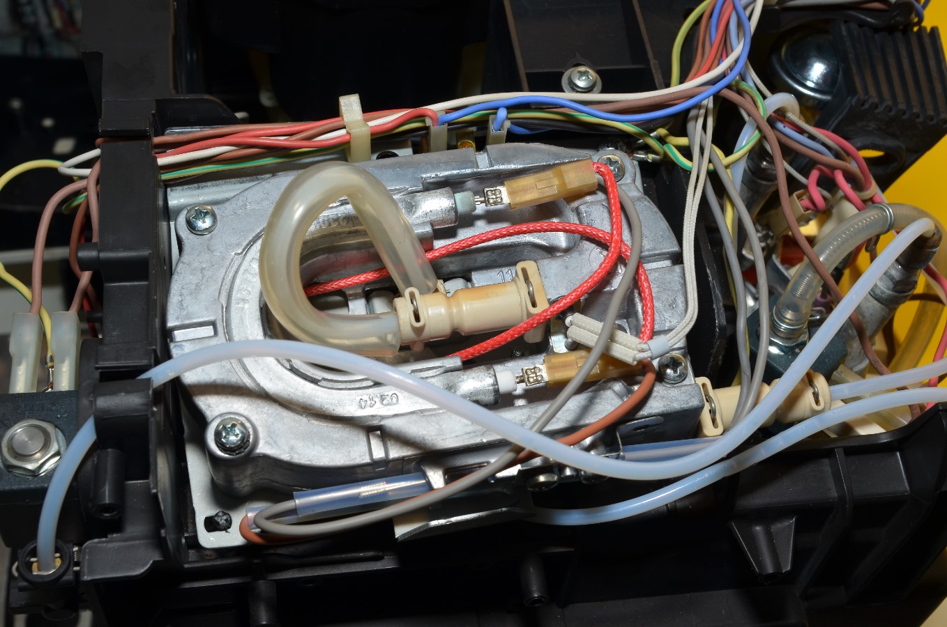 Ich denke deshalb, dass mir beim Aus- oder Einbau des Thermoblocks ein Fehler unterlaufen ist. Die Brühgruppe befindet sich ganz oben, vielleicht hätte dieser vor dem Ausbau des TB. unten sein müssen, leider habe ich darauf nicht geachtet. Irgendwie habe ich den Eindruck als wäre die Brühgruppe oben stecken geblieben. Beim erstmalen nach der "Reparatur" hat sich die Brühgruppe kurz bewegt, der TB. hat kurz aufgeheizt und dann kam die beschriebene Fehlermeldung. Die beiden Sicherungen vorne am Thermoblock habe ich auf Durchgang geprüft, ich denke die sind soweit in Ordnung.