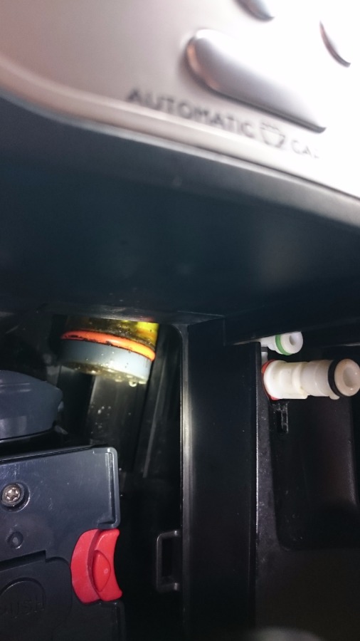 • Der schwarze Schlauch und dessen Ablauf dient als Druckausgleich wenn die Brühgruppe in den Brühkolben fährt.