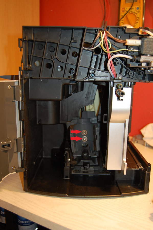 Es passiert nicht immer, aber immer öfter. Es erscheint mir so, als ob die Brühgruppe beim hochfahren die Klappe nach vorne schiebt.