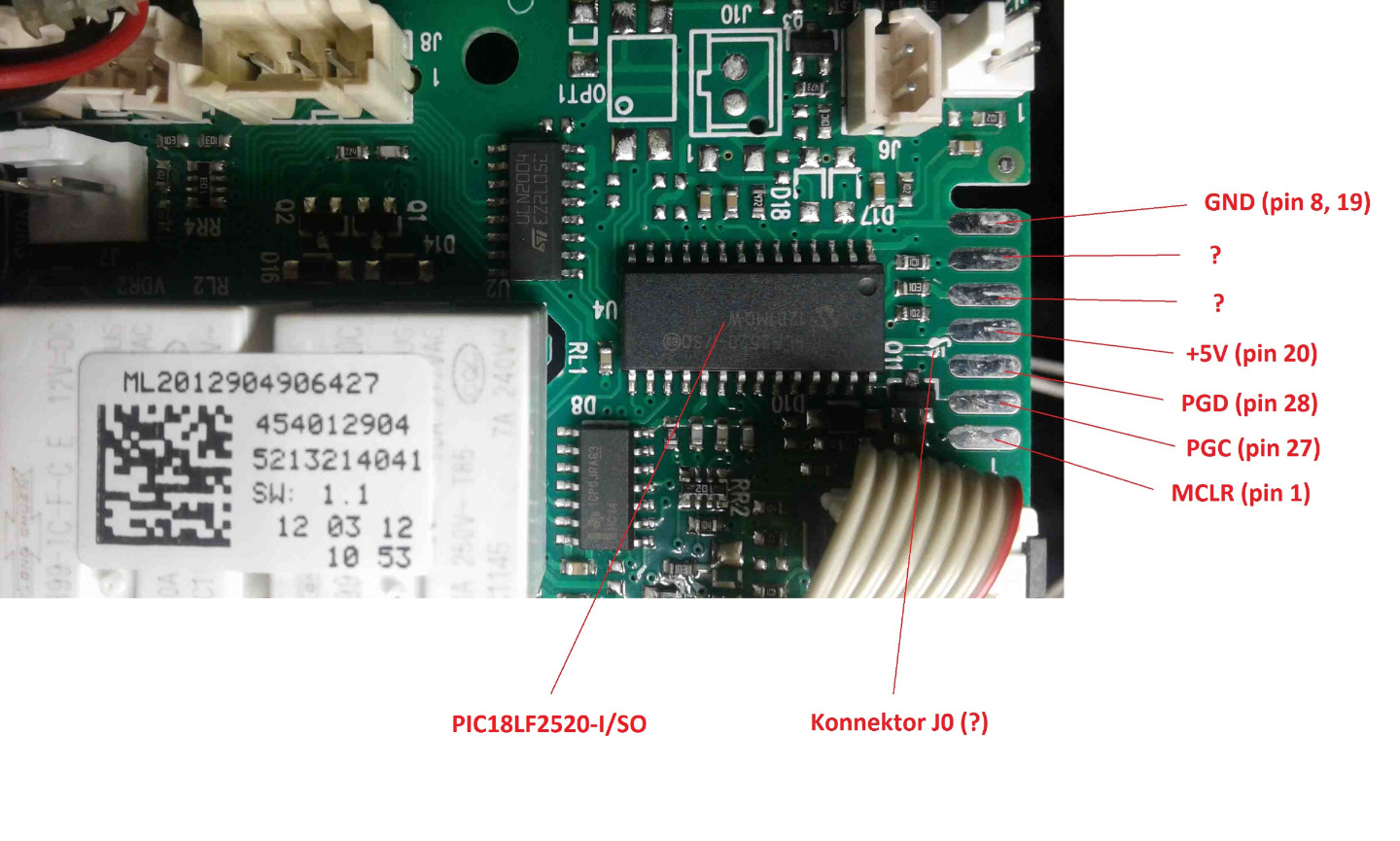 Connector J81 auf der ESAM Leistungsplatine hat alle benötigte Anschlüsse für den PIC18F452: