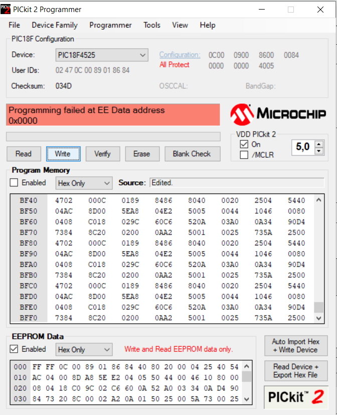 Wenn der Reset nicht funktioniert, empfehle ich eine neue Platine. Es kostet 30 Euro nagelneu! Wenn Sie mit PICkit nicht vertraut sind und noch keines haben, lohnt sich die Mühe nicht