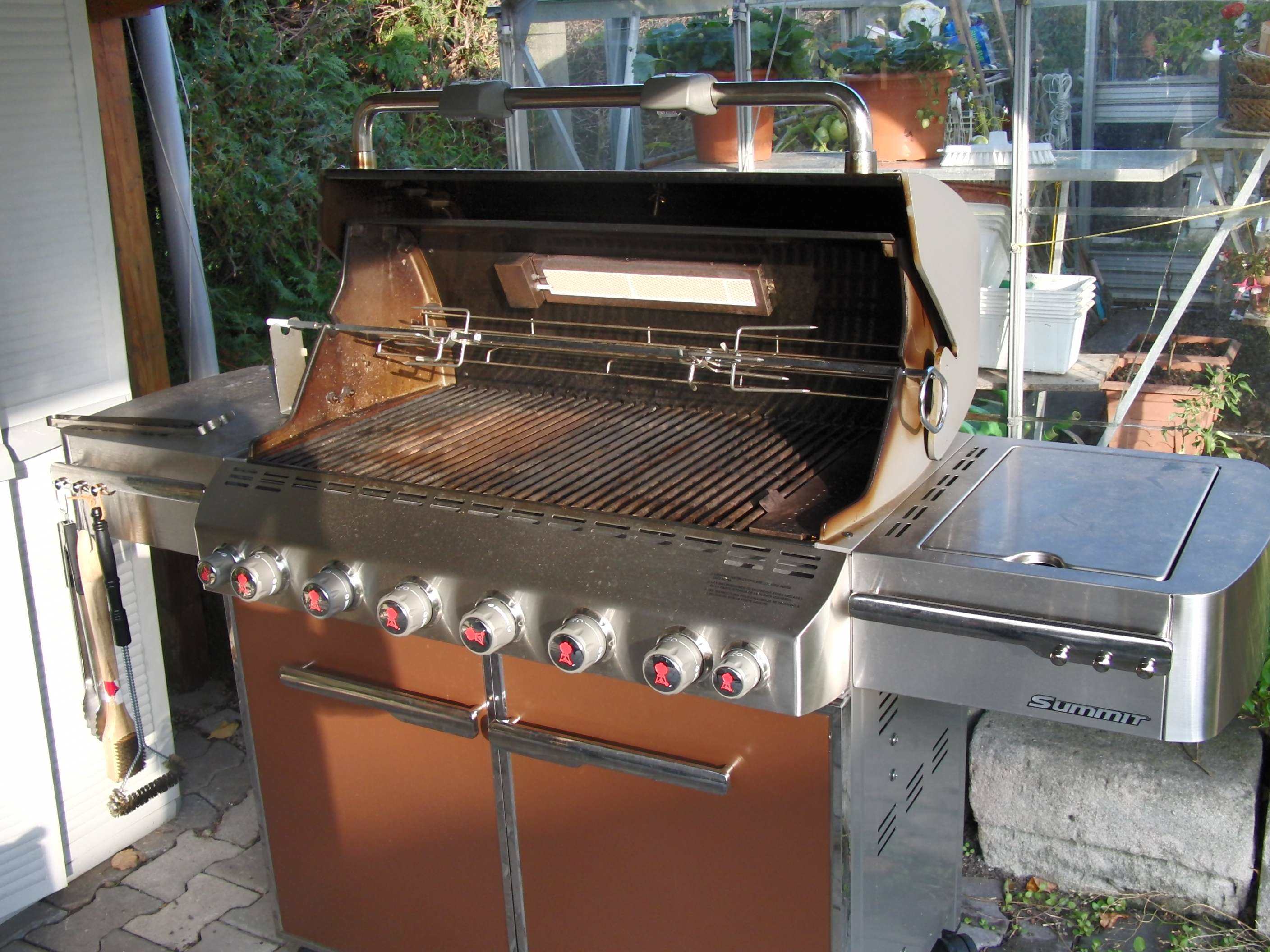 Angedacht ist einen Gas Grill zu verwenden - Grillspieß mit Gitternetz -