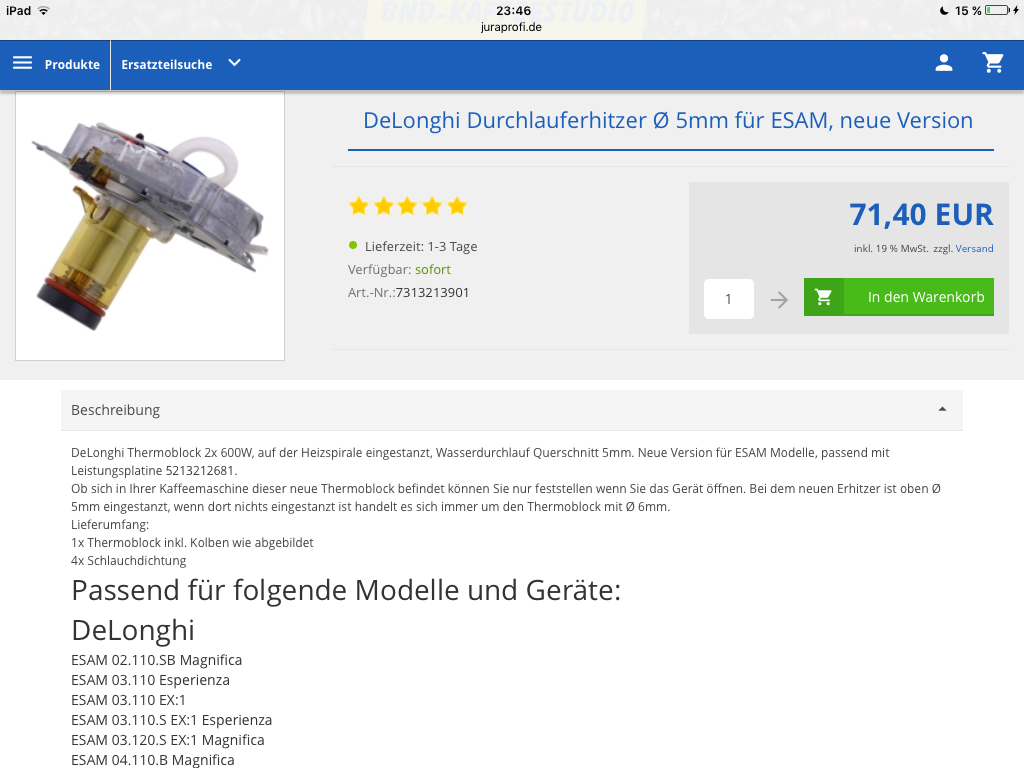 Nun zum Problem:Ich bin stolzer Besitzer einer DeLonghi Magnifica Rapid Cappuccino, laut Aufdruck.Laut Typenschild ist es eine ESAM 3400.S .Die Leistungsplatine ist wohl eine 5232116400.