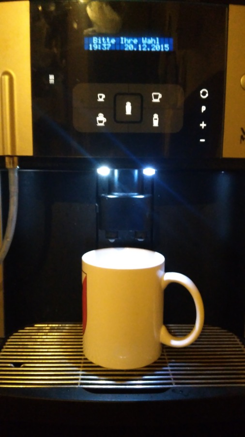 Ich habe grade Urlaub und hatte etwas langeweile, da habe ich meine 800er mal auseinandergenommen um ihr ein paar Lämpchen zu verpassen. Die LED´s der Tassenbeleuchtung sind von einer Jura S9 da diese schon fertig in einem Lampengehäuse verbaut sind. Das für mich wichtigere ist allerdings die Bohnenkontrolle. Ich habe mich schon immer etwas geärgert das mir immer mal wieder der Bohnenbehälter leer ging und ich erst in den Keller muss um mir Bohnen zu holen wenn ich gerade draufgedrückt habe und JETZT einen Kaffee will. Inspiriert von einer Severin KV8001 (die ich als schrott noch im Keller habe) versuchte ich das an der 800er umzusetzen. LED incl. LED Gehäuse aus der Severin in die 800er gebaut. Bohnendeckel aufgeschnitten und die Scheibe aus dem bohnendeckel der Severin angebracht. Die rote LED sitzt im Bohnenbehälter hinten an der Schräge kurz bevor es gerade runter in das Mahlwerk geht. Die LED ist immer an wenn die 800er angeschalten ist. Sobald nun die Bohnen weniger sind und nur noch für ca. 2 Bezüge reichen geben die runterrutschenden Bohnen die LED frei und ich sehe oben durch den deckel ein rotes leuchten und weiß das ich Bohnen nachfüllen muss.