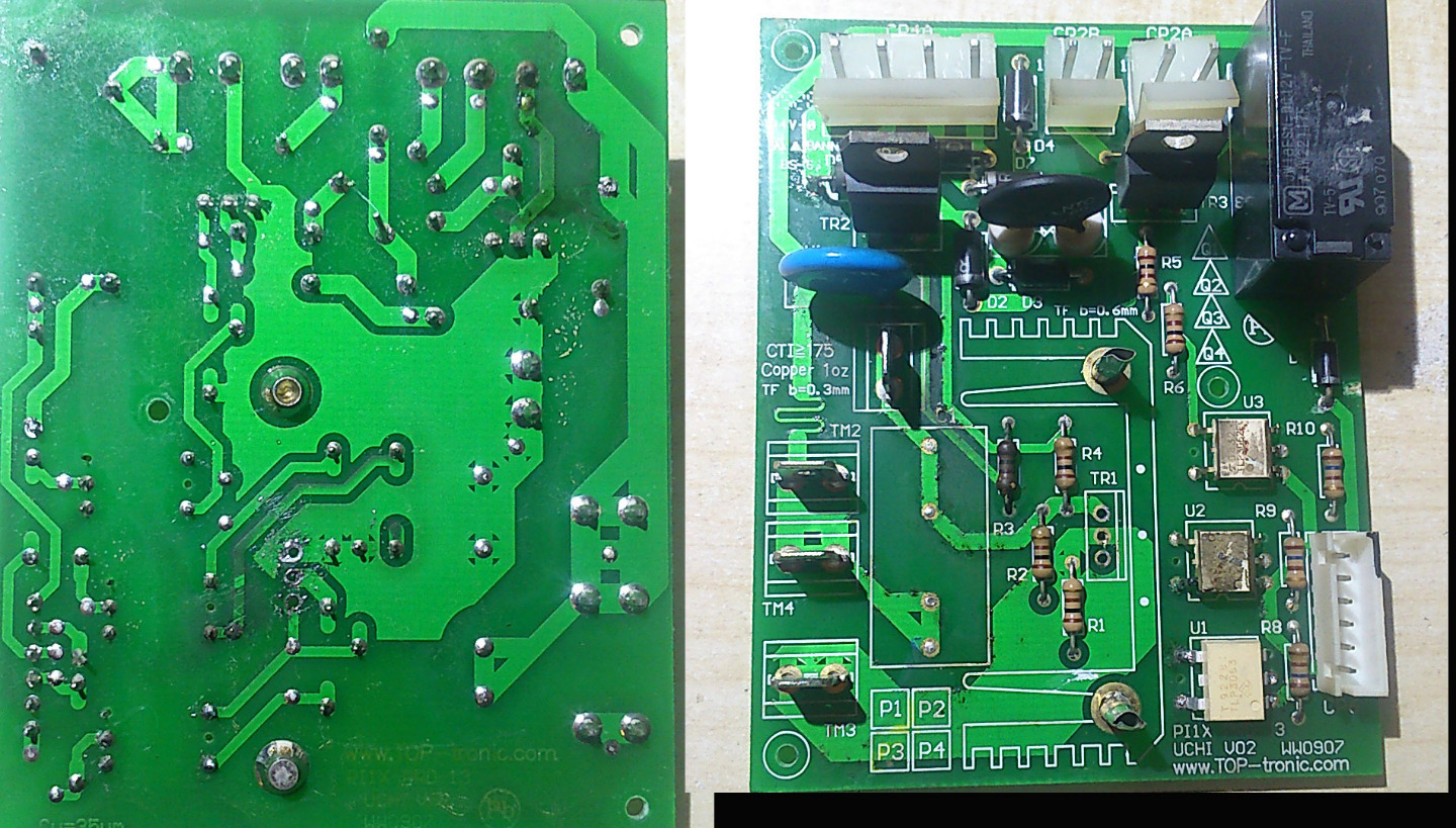 Wenn ich den Stecker der Steuerplatine rechts daneben abziehe dann sind die 230V weg.Das heisst ja das die Steuerplatine einen Defekt hat.