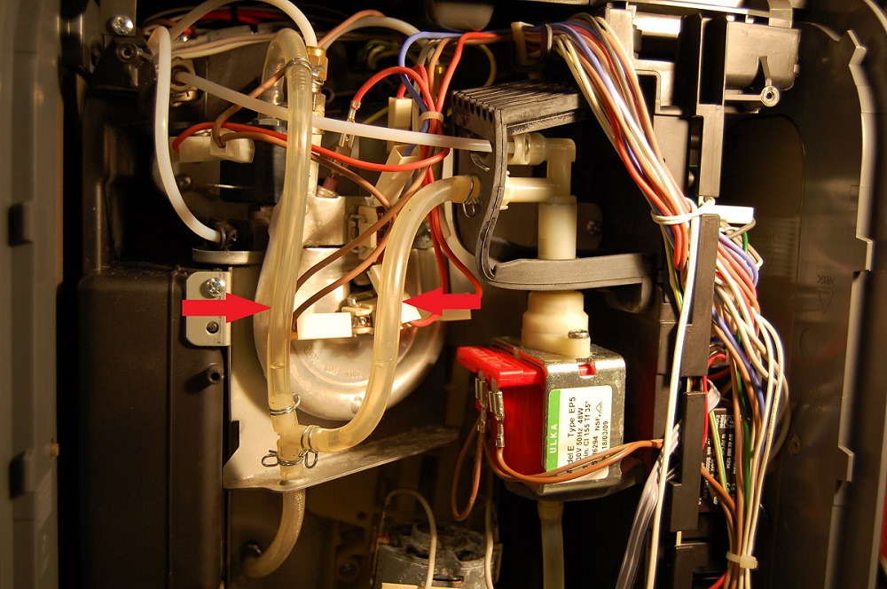 Vermutlich das hintere 3 Wegeventil def. Mach mal die Rückwand weg und schau, in welchem der dicken durchsichtigen Schläuche das Wasser während dem Kaffeebezug wegfließt.Gruß Stefan