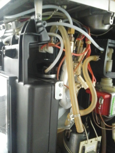 Nachdem sie Einsatzbereit ist und ich Warmes Wasser auslaufe lasse,kommt seitliche viel Wasser im AUffangbehälter raus,habe die Abdeckung neben Wassertank abgeschraubt und habe gesehen dass das Wasser aus dem schwarzen Schlauch kommt,der von Brühkolbe kommt.Woran kann das liegen?
