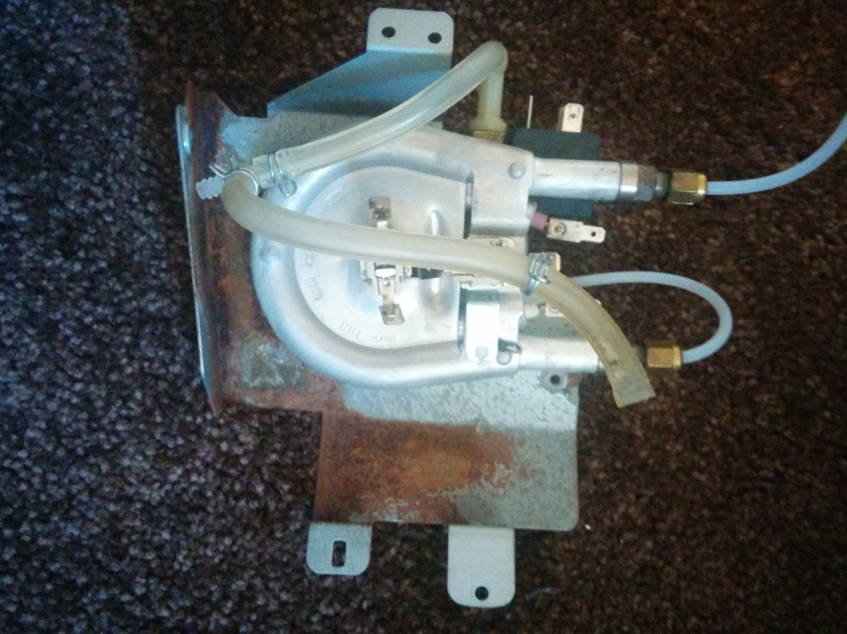 Die Maschine zeigt keinerlei Reaktion nach dem einschalten. An dem Blech der Dampfheizung, die ich mittlerweile gewechselt habe, war sehr viel Rost (Foto 1).