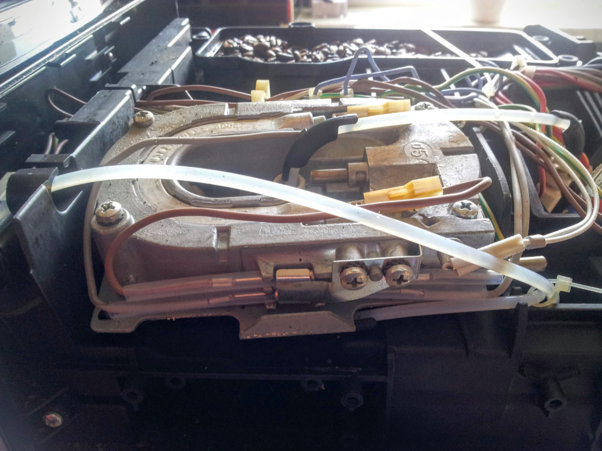 Habe es dann mehrmals probiert: Spülen, heiß Wasser/Dampf und Kaffeebezug. Nach einer Weile aber wieder das gleiche Problem. Pumpe arbeitet nur sehr leise und quält sich. Habe den dünnen Druckschlauch hinter der Pumpe abgezogen und Spülvorgang sowie Kaffeebezug gestartet. Hier kommt das Wasser mit Druck.