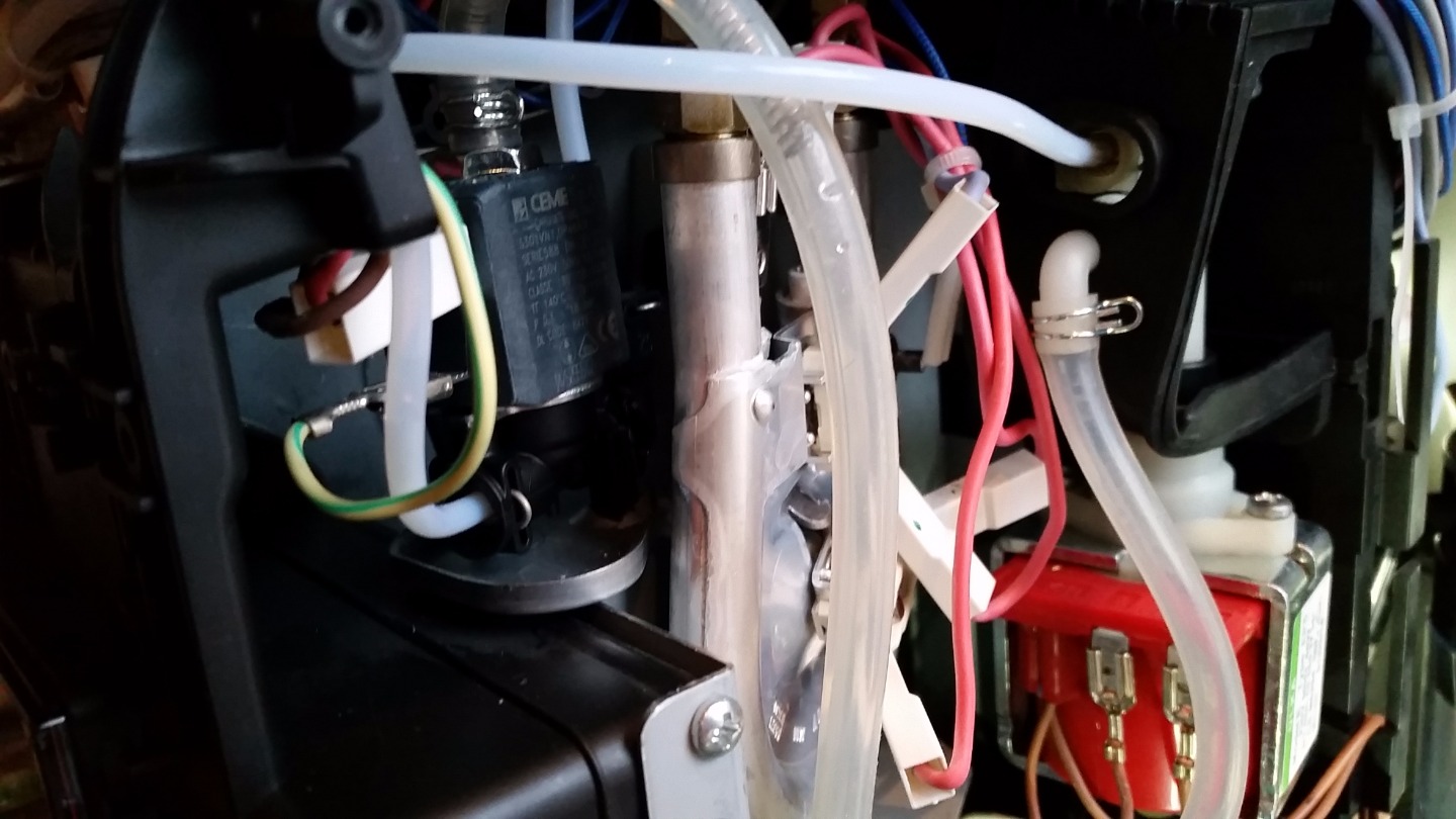 • Wenn die Pumpe leiser wird, ist irgendwo der Wasserfluss blockiert. Das hat auch nichts mit dem Magnetventil zu tun, da dieses nur den Heisswasser/Dampfweg freigibt.
