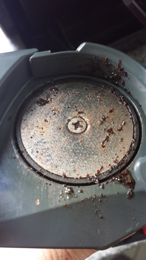 • Die Brühgruppe hab ich ja schon des öfteren abgespült mit Wasser, da sich immer Kaffeesatz drauf gebildet hat.