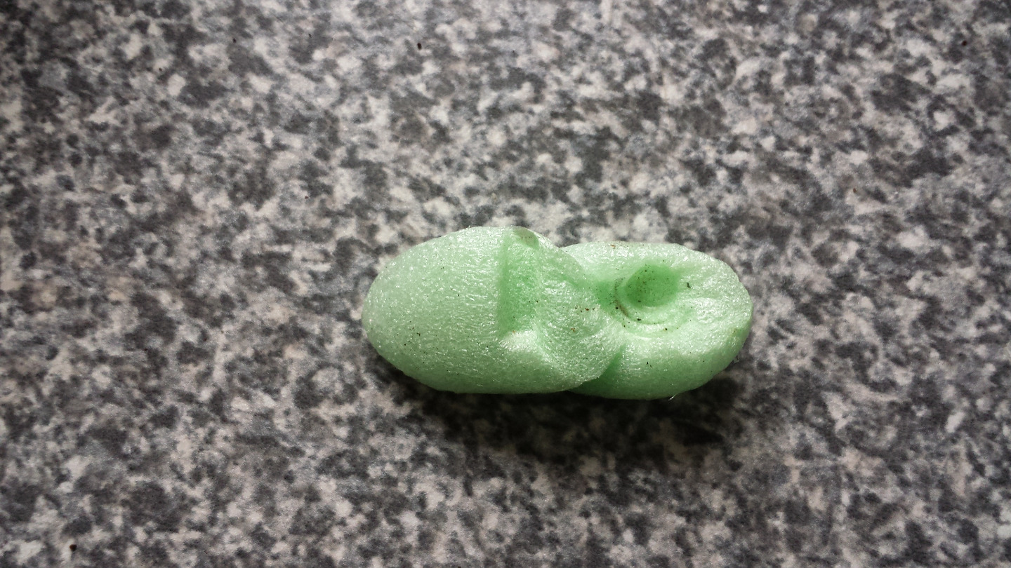 • Das bisschen Wasser sollte normal sein. Das grüne ist ein "Styroporchip", diese nimmt man zur Auspolsterung beim Transport. Der war dem Aussehen nach aber irgendwo eingeklemmt gewesen.