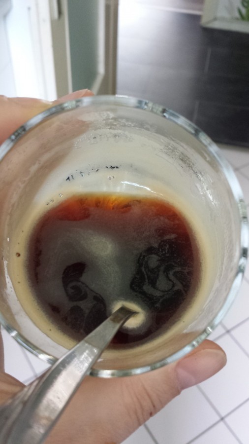 Der Kaffee kommt aus dem Auslauf erst schwarz wie die Nacht und wird dann wässriger.