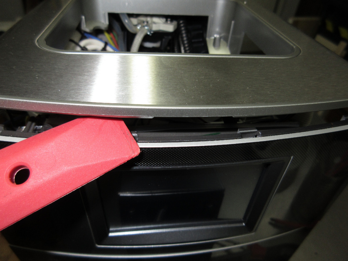... vorne vorsichtig am Displayrahmen oben die Klipse raus hebeln.