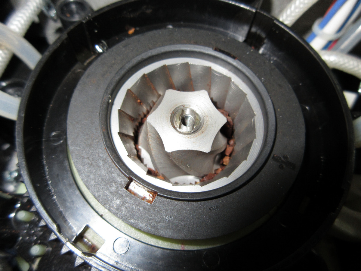 • Detail vom Zahnrad der Mahlgradverstellung: