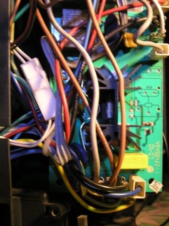 Die AEG CG 6200 kam bei mir durch die Haustür mit den Worten "Papa, diemacht kein Schaum mehr". Maschine eingeschaltet und nichts tat sich (derrückwärtige Kippschalter war eingeschaltet). Die Menütasten waren durchBackteig o.ä. zusammengeklebt. Es wurden also mehrere Menütasten gleichzeitigund dauerhaft gedrückt. Nach der Reinigung die Pumpe durchgemessen - keinDurchgang. Neue Pumpe eingesetzt - Maschine immer noch stumm. Strom liegt ander Leistungs-platine an. Dann habe ich den Kondensator X2 MKP/SH 40/100/21/Bausgelötet und durchgemessen. Da kein Durchgang zu messen war, einen exakt dengleichen von Conrad eingelötet. Display immer noch dunkel. Eine Prüfung derLötstellen mit der Lupe zeigte nichts auffälliges. Die Maschine macht keinenMucks. Als nächstes habe ich den Trafo in Verdacht.