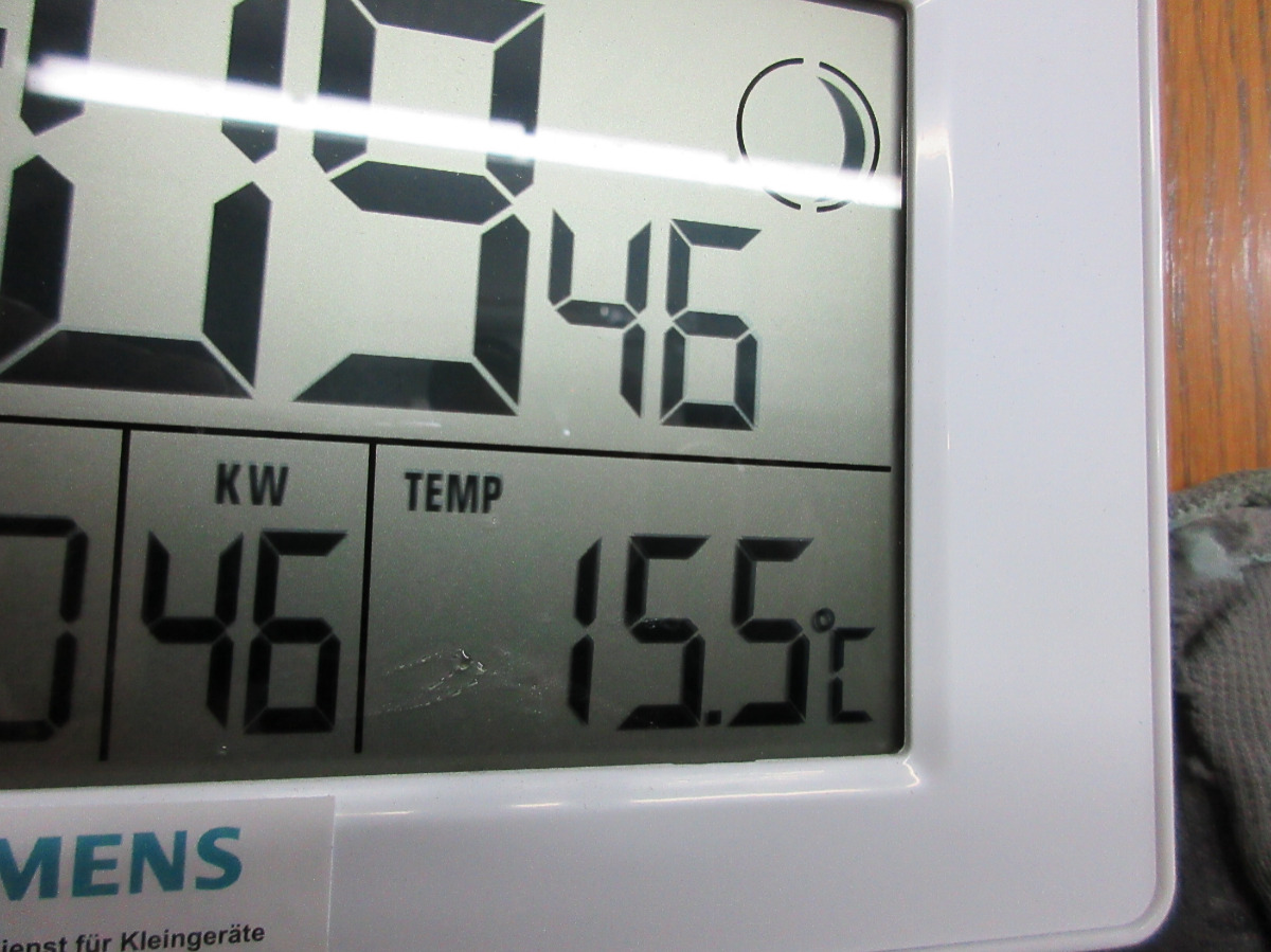 Doch nun leuchten nach dem Einschalten alle Dioden im Display, gehen aus, heizt auf, der Kolben fährt kurz hin und her und dann wird´s dunkel. Solange die Temperatur noch stimmt, leuchtet das Display nur kurz auf.
