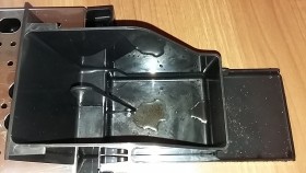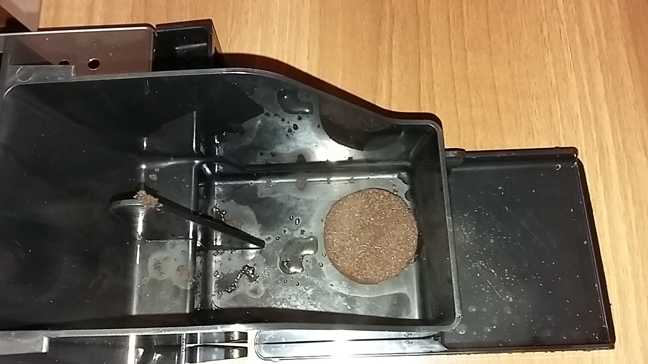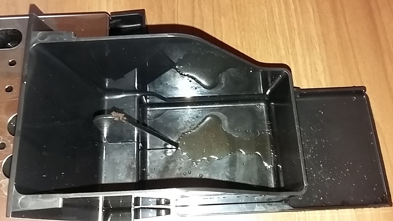 Leider besteht das Problem fort. Ich frage mich nun, ob baubedingt immer etwas Wasser in den Tresterbehälter gerät oder ob immer noch ein Defekt besteht. Nachfolgend drei Bilder zu Veranschaulichung: