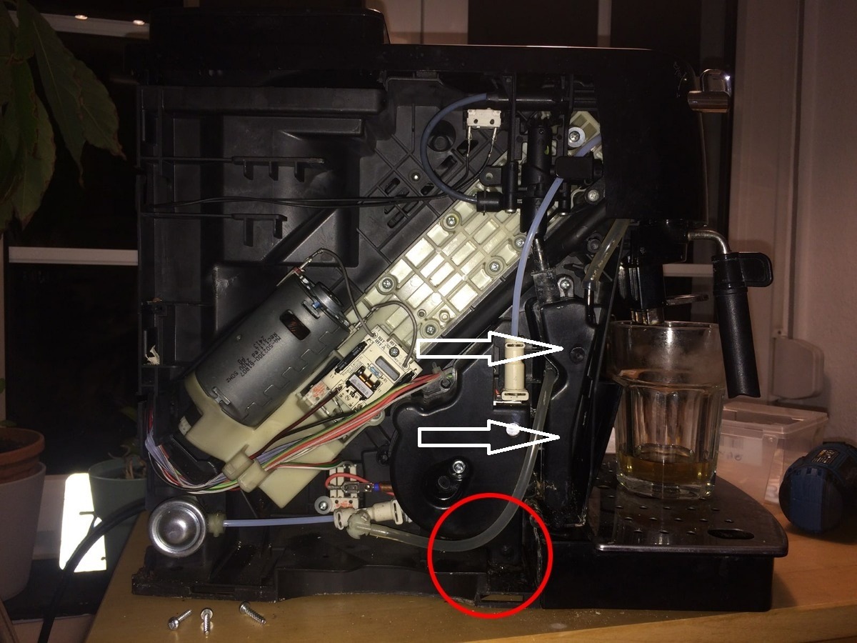 Ich habe da mit einem scharfen Messer ein paar mm vom Chassi weggeschnitzt damit der "Auslaufschnüdel" frei liegt und sauber in die rote Schale tropfen kann.