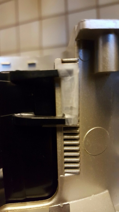Aber trotzdem ganz lieben Dank, für die Idee. Und JA... Ich denke auch, dass das Erwärmen und entsprechende Umformung an dem Bügel eine Abhilfe schaffen könnte. Nur bin ich davon überzeugt, dass das Material, welches ohnehin schon eher hart ist, durch thermische Einwirkungen der Heissluftpistole oder durch Wasserdampf keine Dauerlösung ist. Daher war meine präferierte Vorgehensweise auch das beschriebene Provisorium. Die komplette Tür mit Kaffeeauslauf exklusive der Verkleidung für die linke Außenseite habe ich für ein paar Euronen bestellt. Und bis dahin hält halt das Klebebandprovisorium, auch wenn dies nicht die hygienischste oder gar hübscheste Variante ist.
