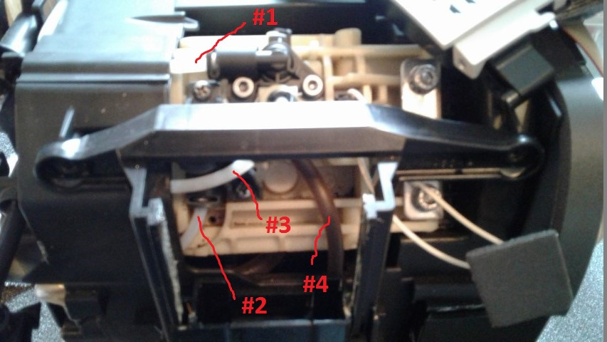 Aber dann geht es falsch: dann kommt das Wasser direkt aus dem Schlauch #1 die zurück zu (mechanischen) Dampfventil geht, siehe angehangten Bilder, und geht dann nach unten zu roten Wasserauffangbehälter (der natürlich gleich voll ist).