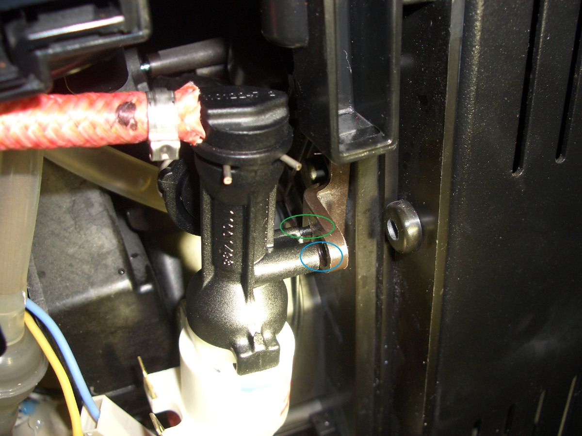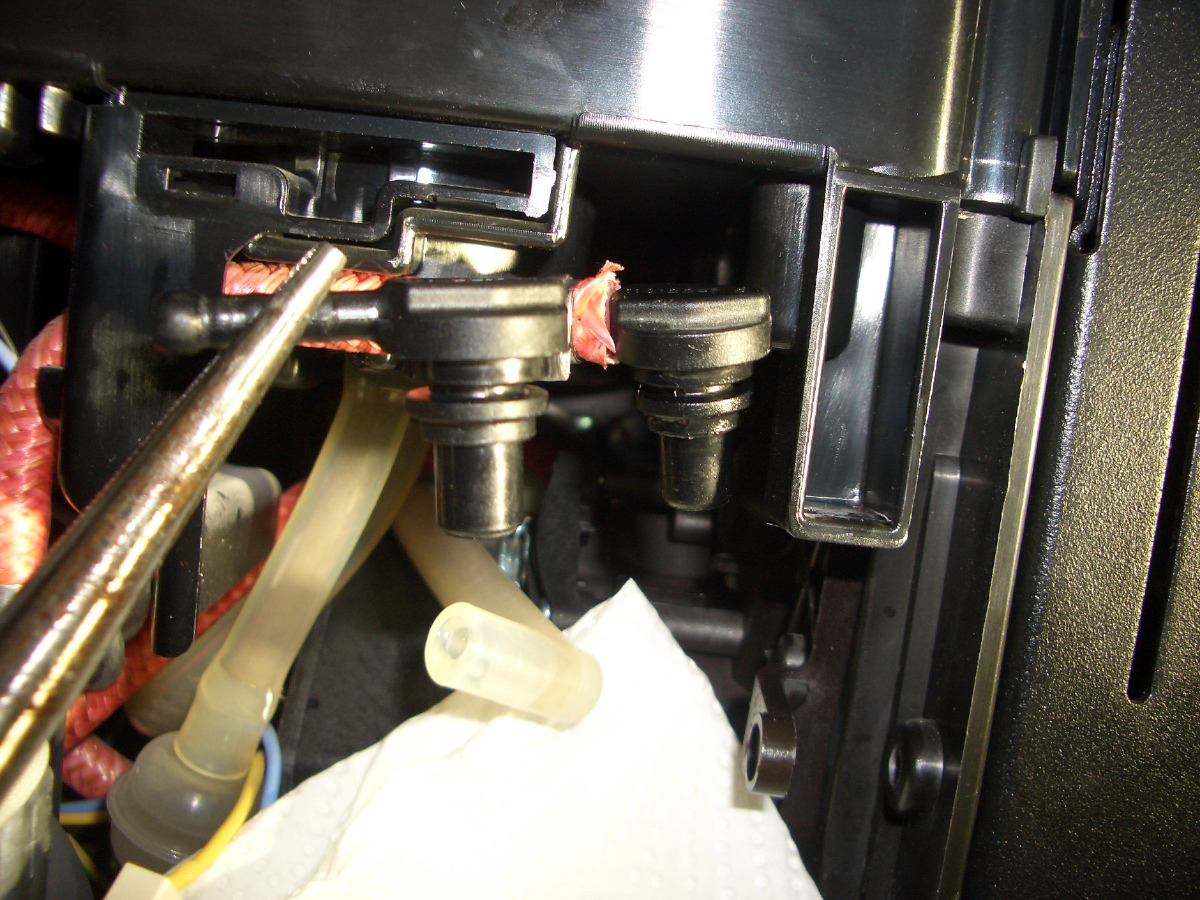 Wenn an der linken Seite mittig bei einer Saeco Exprelia Wassser hervor kommt,