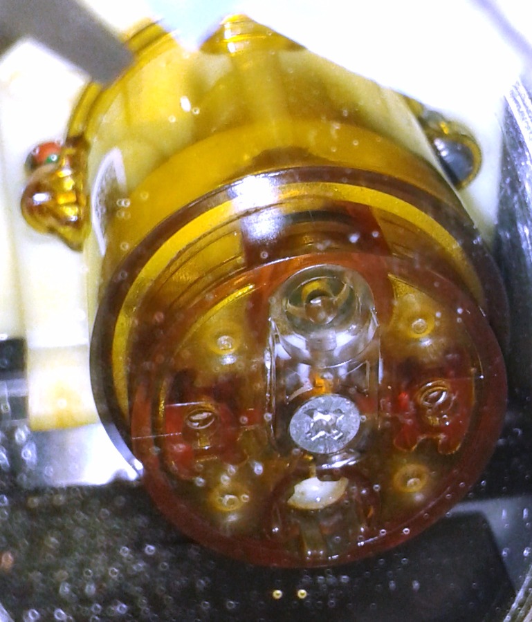 Nach Abschrauben des Siebs fiel mir auf, daß die Delle scheinbar genau über der darunter liegenden Auslass-Öffnung liegt. Könnte hier evtl. der Durchfluss merkbar gebremst sein? Wir schaffen es nämlich seit Anfang an nicht, wirklich schmackhaften Kaffee zu bekommen. Uns ist er immer zu bitter, egal wie stark oder leicht er gebrüht wird. Natürlich kann es an der Sorte liegen, aber da probieren wir uns immer noch durch. Die Ergebnisse sind aber immer ähnlich.