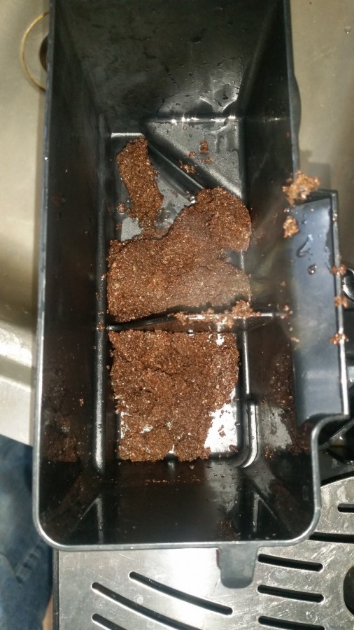 Die o.g. Maschine hat vor 2 Wochen einen neuen kompl. Thermoblock erhalten. Lief bisher alles einwandfrei. Jetzt auf einmal ist der Kaffee total dünn und schmeckt nicht. Im Behälter festgestellt, dass die dort keine Kaffee Tabs drin sind (siehe Bild)