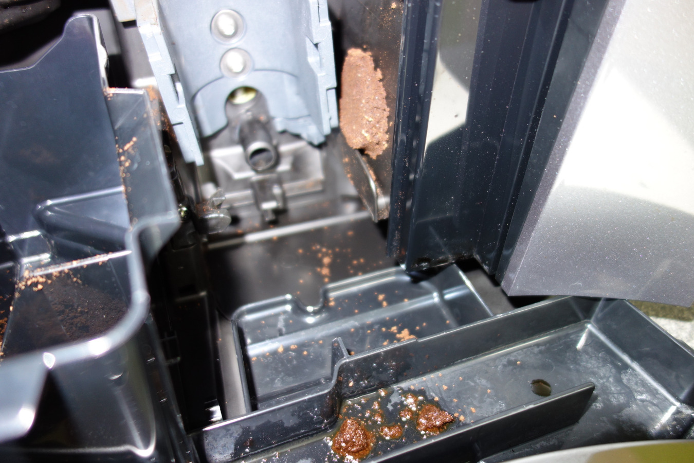 Wenn zb. ein Kaffee/Espresso gemacht wird, klackt die Brüheinheit gegen Ende sehr laut. Sobald das Heißgetränk fertig ist und ich die Maschine öffne, liegt der gepresste Kaffeesatz nicht im Auffangbehälter, sondern quer verteilt im Innenraum der Maschine. Ich habe das Gefühl, der Kaffeesatz ist auch sehr feucht. Wenn ich anschließend die Brüheinheit entnehme (und zerlege) befindet sich im Inneren der Einheit - entlang des Kolbens - Wasser, auch in der Abtropfschale befindet sich Wasser.