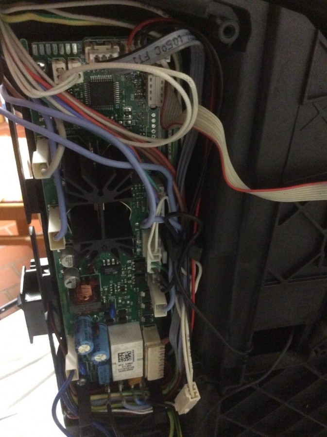 Ah, so zu sehen ist die kleine Platine eine 'Extension' von der Leistungsplatine, bei andere Maschinen sind alle Anschluesse auf der 'Hauptplatine'.